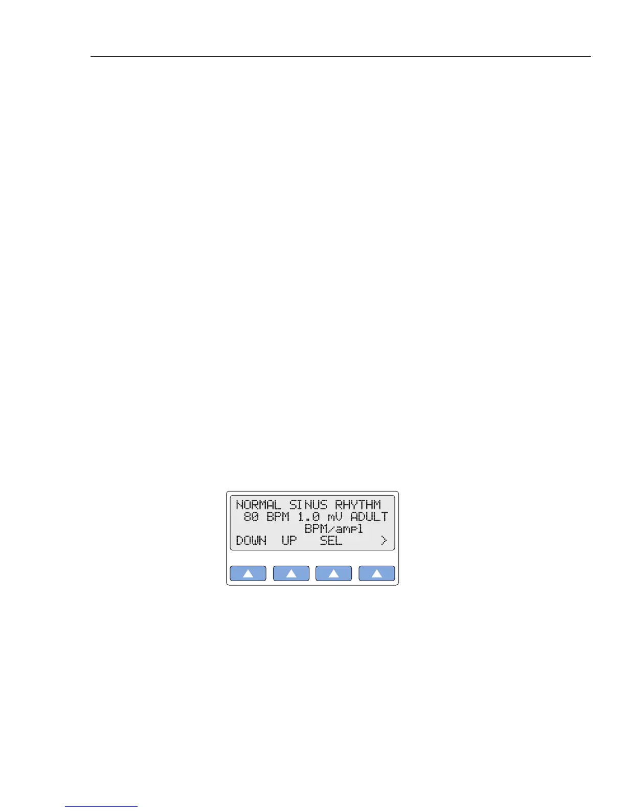 Beats-per-minute, ECG amplitude, and patient type are adjustable. (Adjusting the BPM