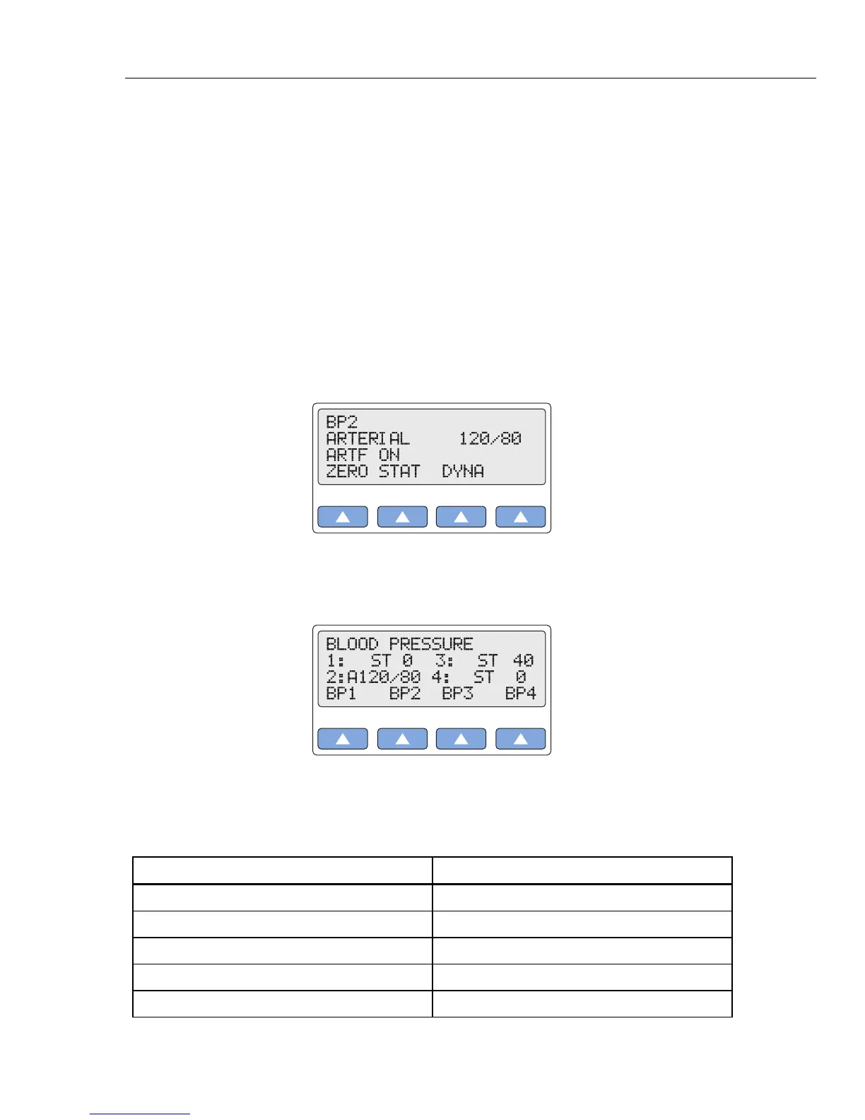 7. Press the ESC key again to return to the top menu BLOOD PRESSURE. The LCD