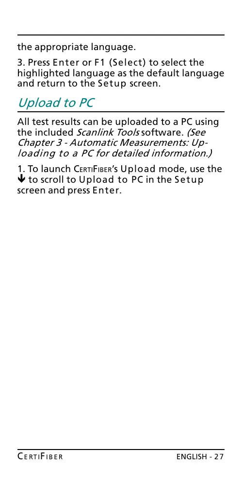 ê to scroll to Upload to PC in the Setup