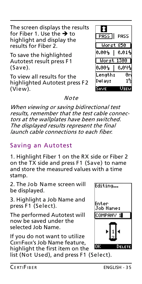 1. Highlight Fiber 1 on the RX side or Fiber 2