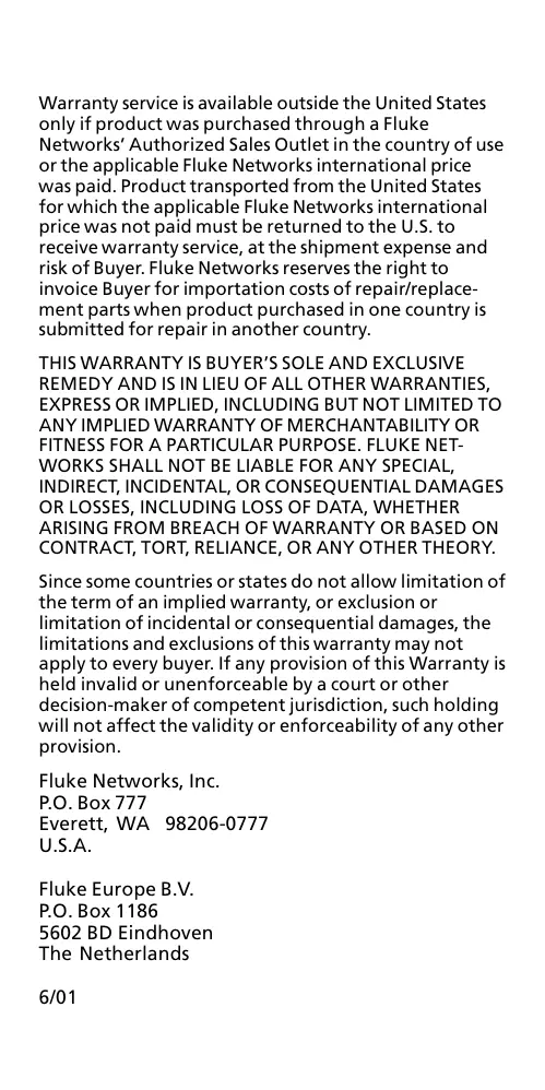 FITNESS FOR A PARTICULAR PURPOSE. FLUKE NET-