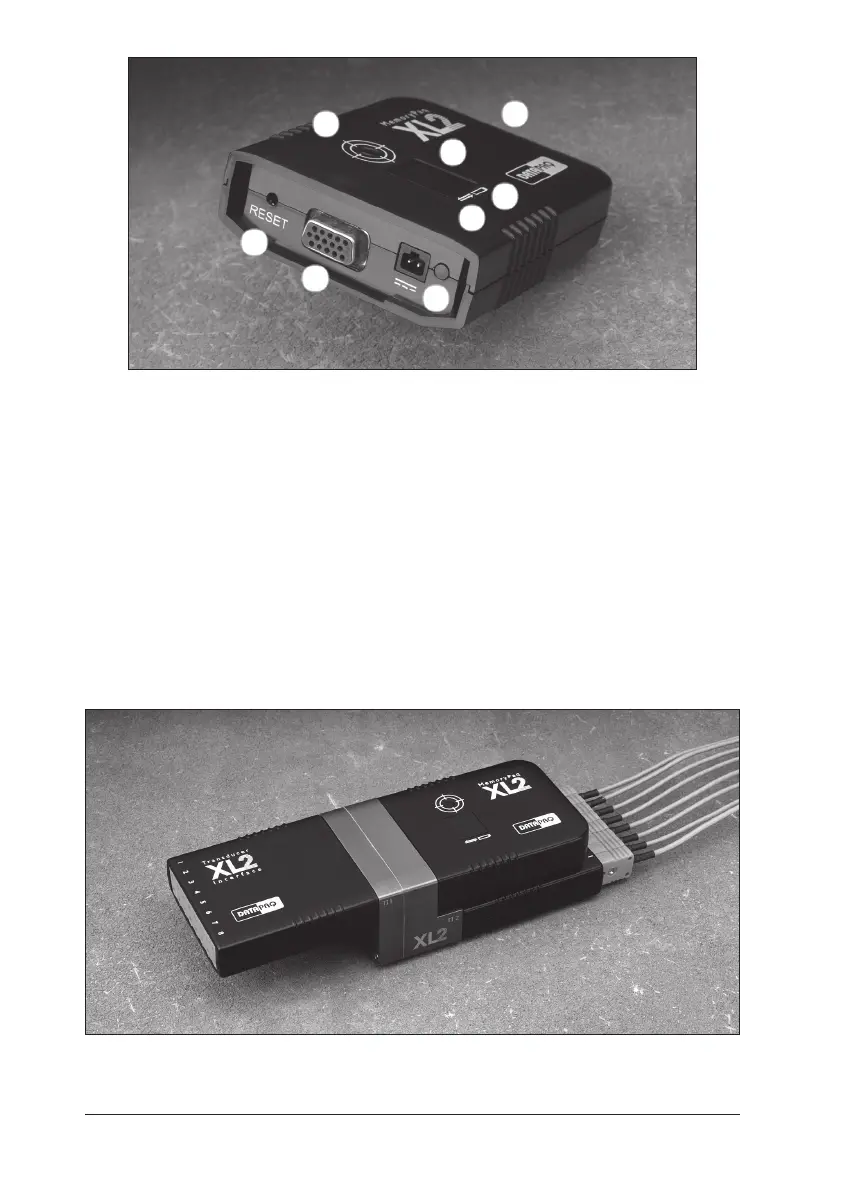 The XL2 logger: MemoryPaq (upper-right unit) with Dual Interface Block (central