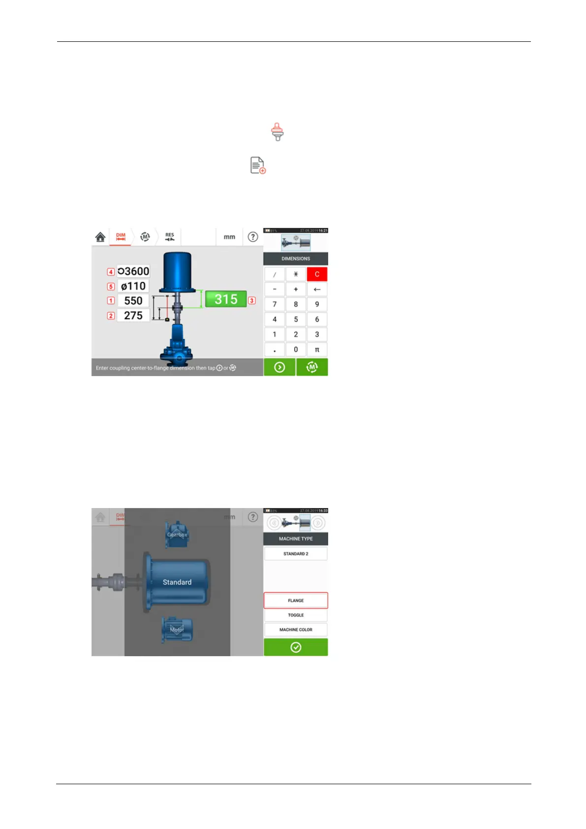 l When entering machine dimensions, the flange geometry must be taken into account.