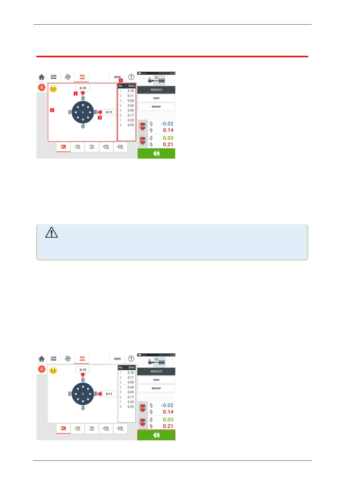positions are shown on the screen. Insert (or remove) shims with the correct thickness under