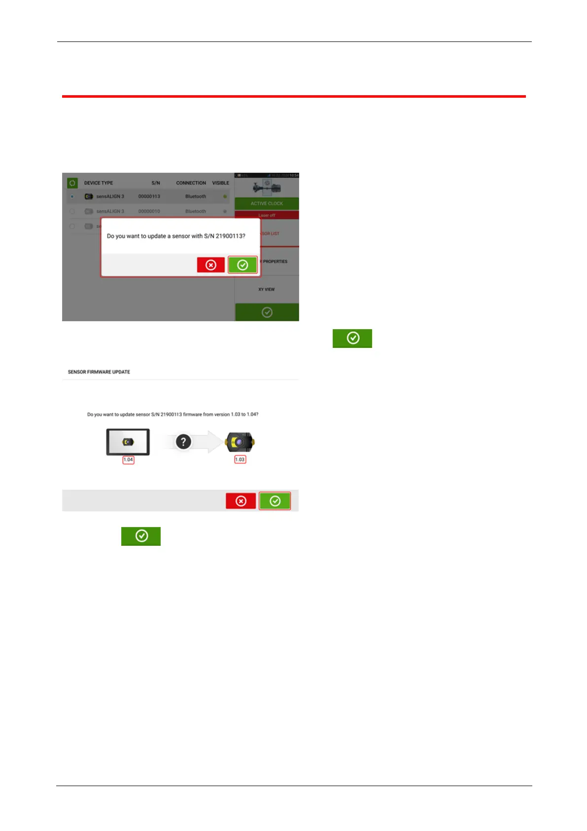 It is possible to carry out a sensor firmware update directly via the rugged touch device. If a