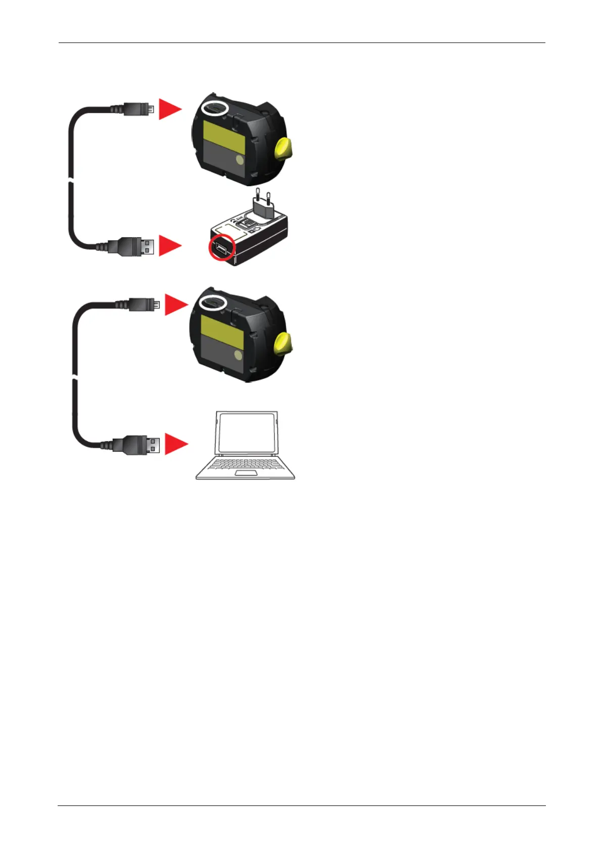 The supplied micro USB is used to connect the charging source to the sensor.