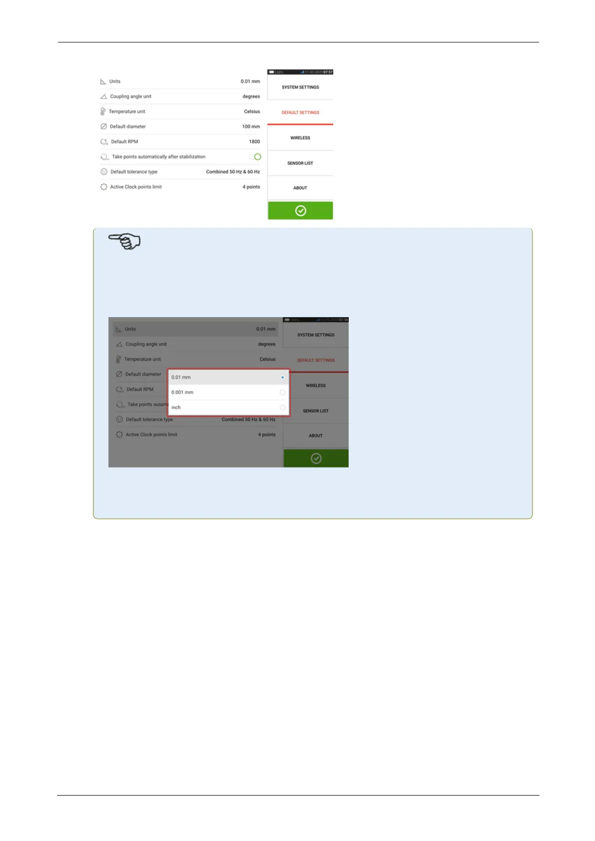 device may be set to two (0.01 mm) or three (0.001 mm) decimal places. This