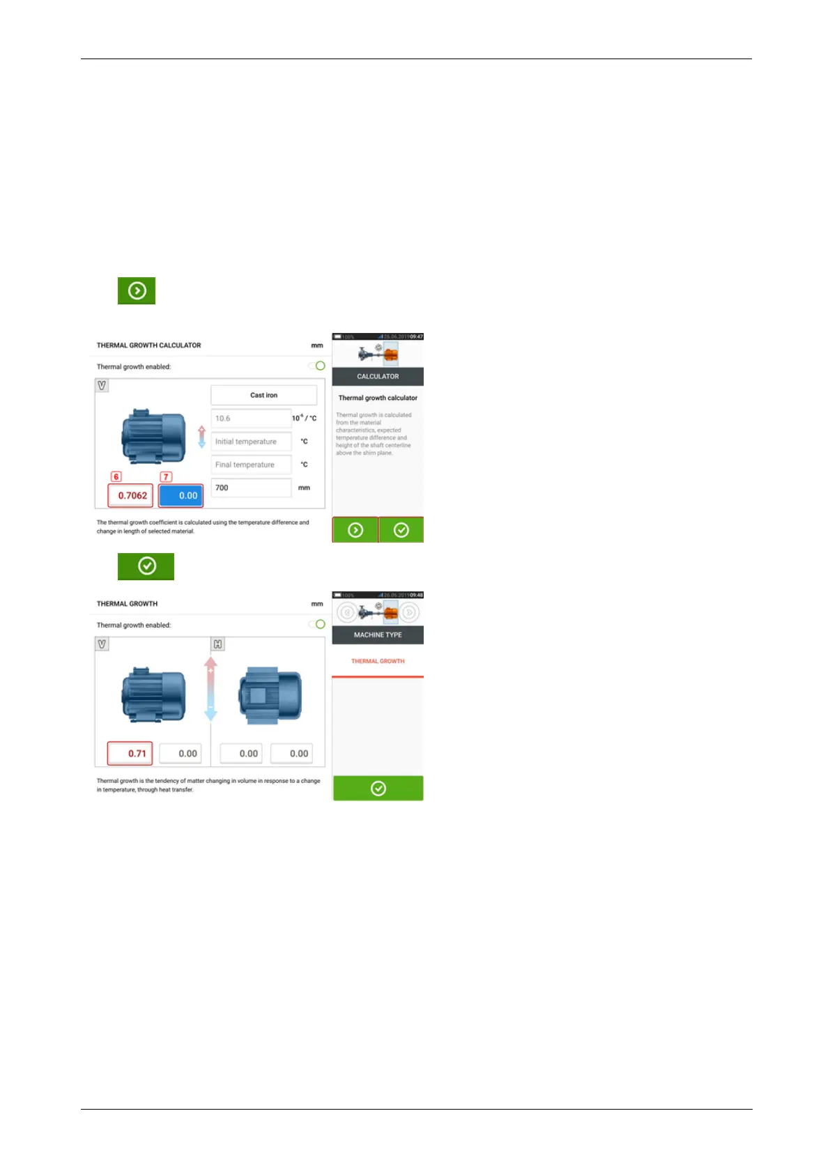 Tap to simultaneously display the calculated thermal growth value for the respective