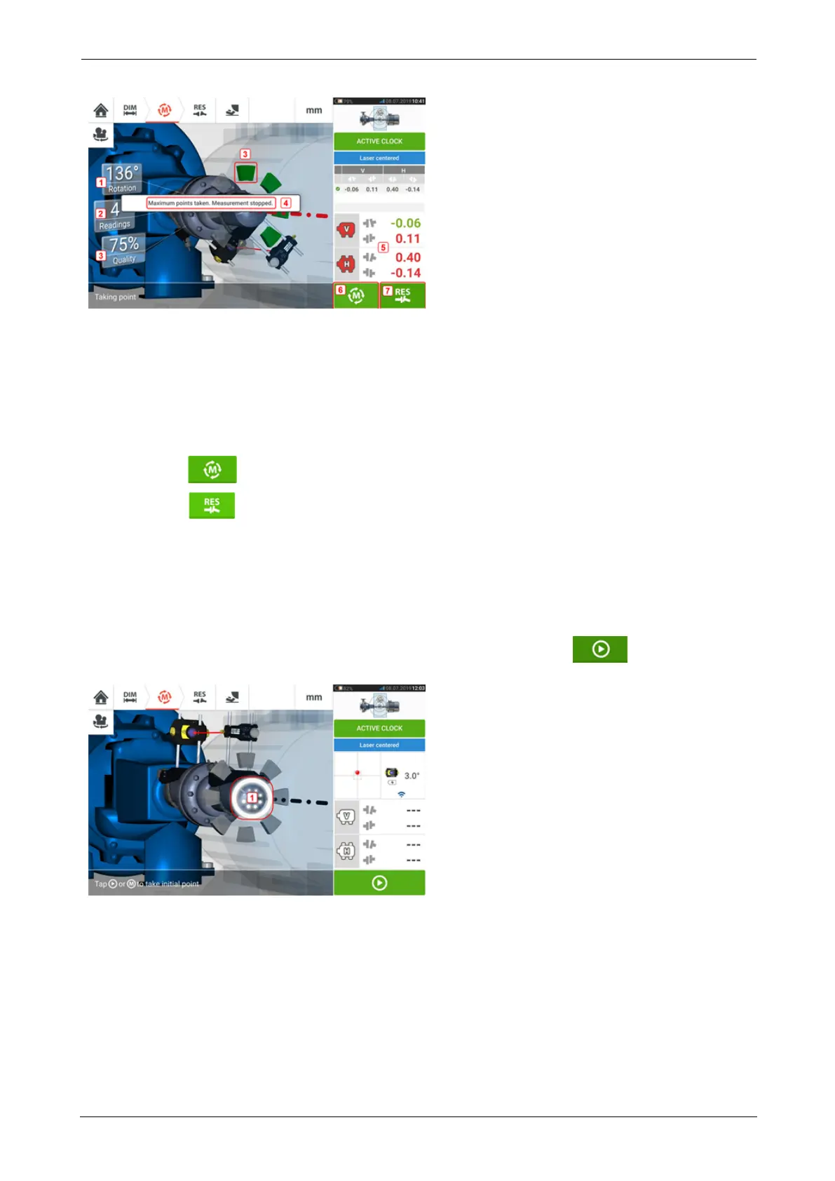 The subsequent measurement points are taken automatically. The shafts are rotated to the