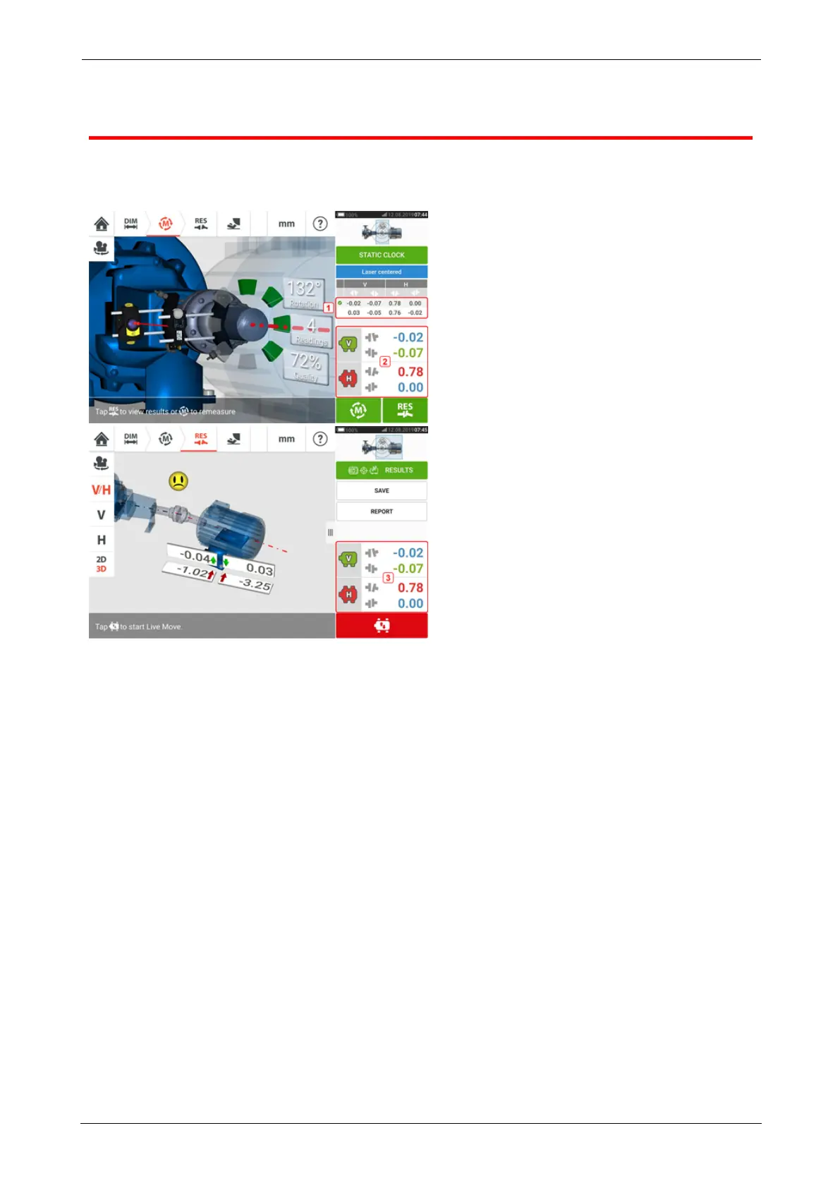 The measurement table is used to register and display all Shaft alignment, and any Live Move