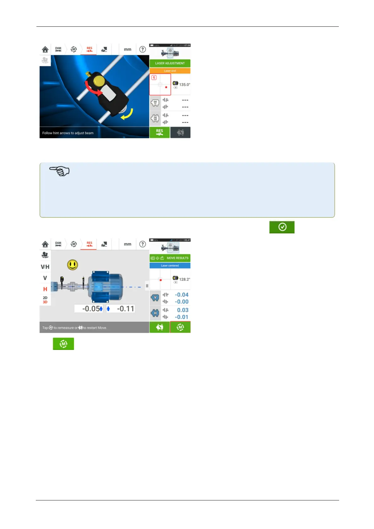 Tap to remeasure and verify the Live Move results, and confirm new alignment con-