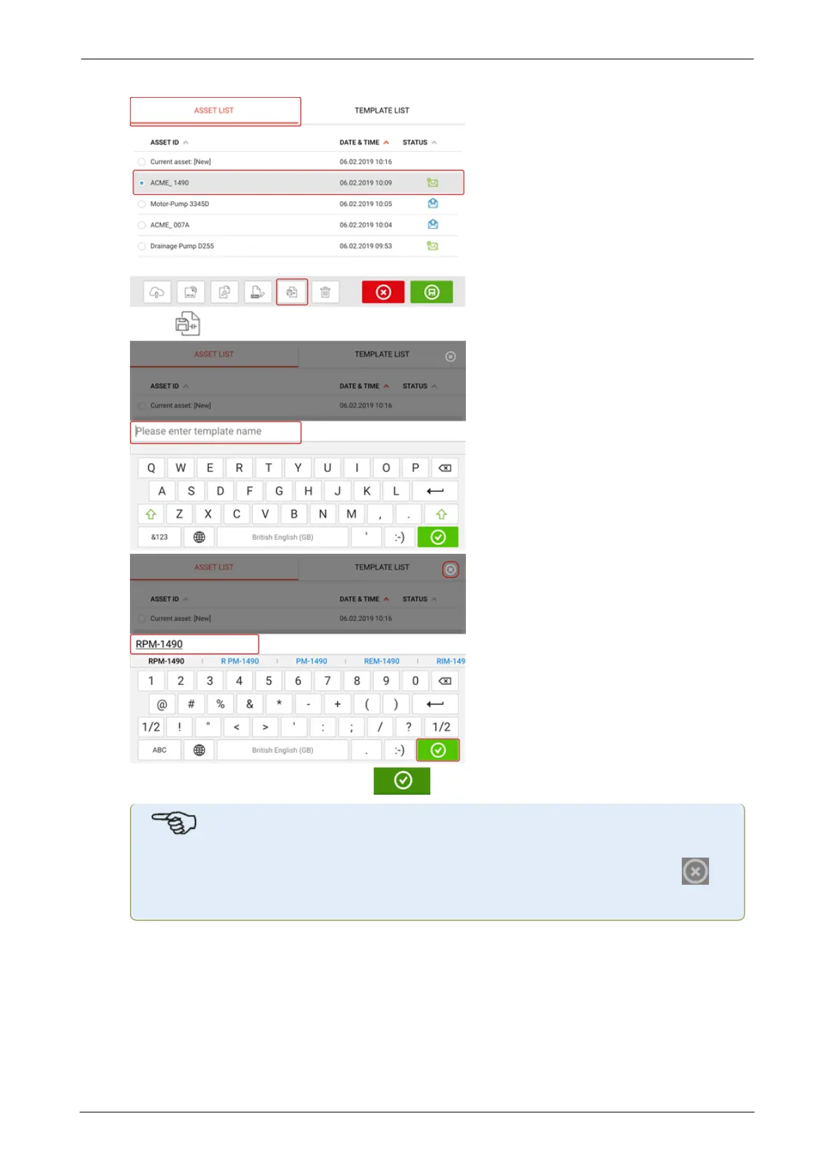 If for any given reason, the template is not to be saved, tap the cancel icon [ ]