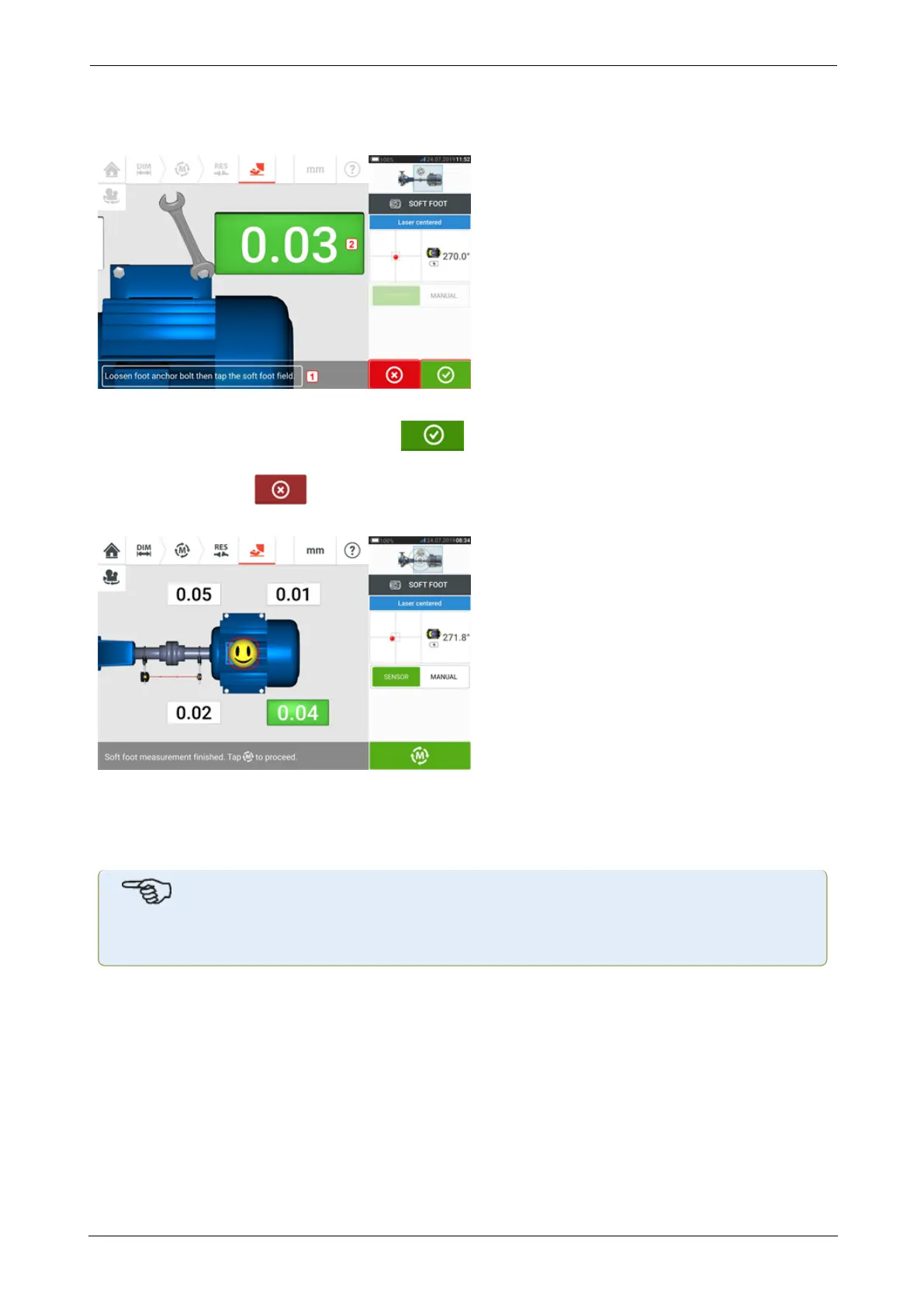 canceled by tapping the 'Cancel' icon. The above soft foot measurement procedure is