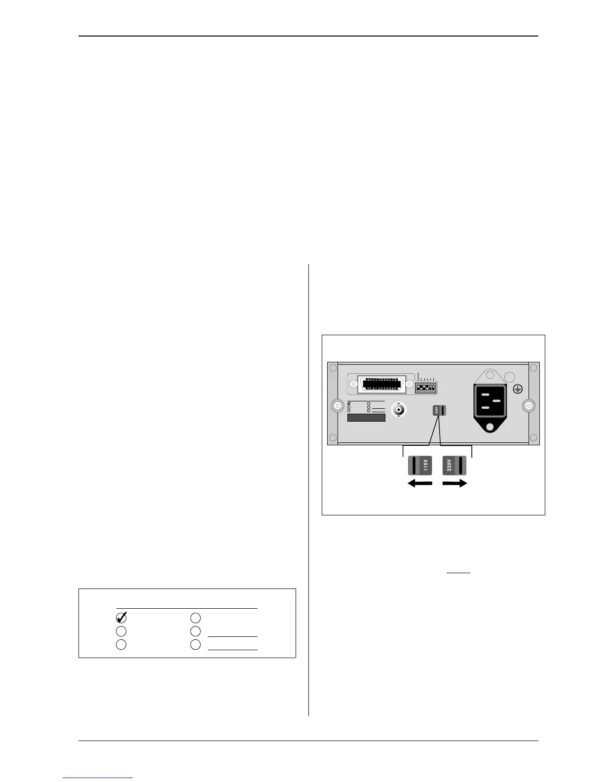set to either 115 V or 230 V. The setting is indicated on the