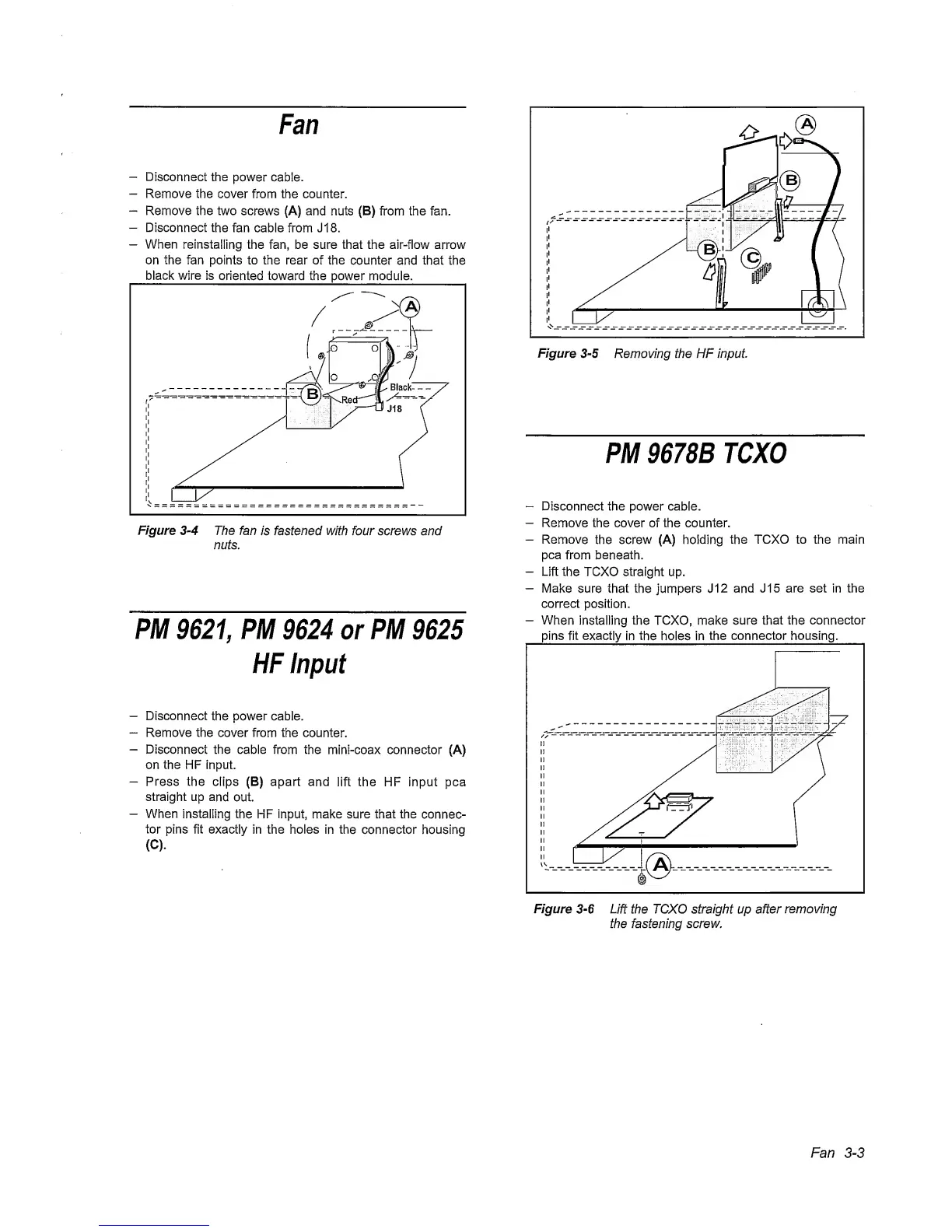 screws (A) and nuts (B) from the fan.