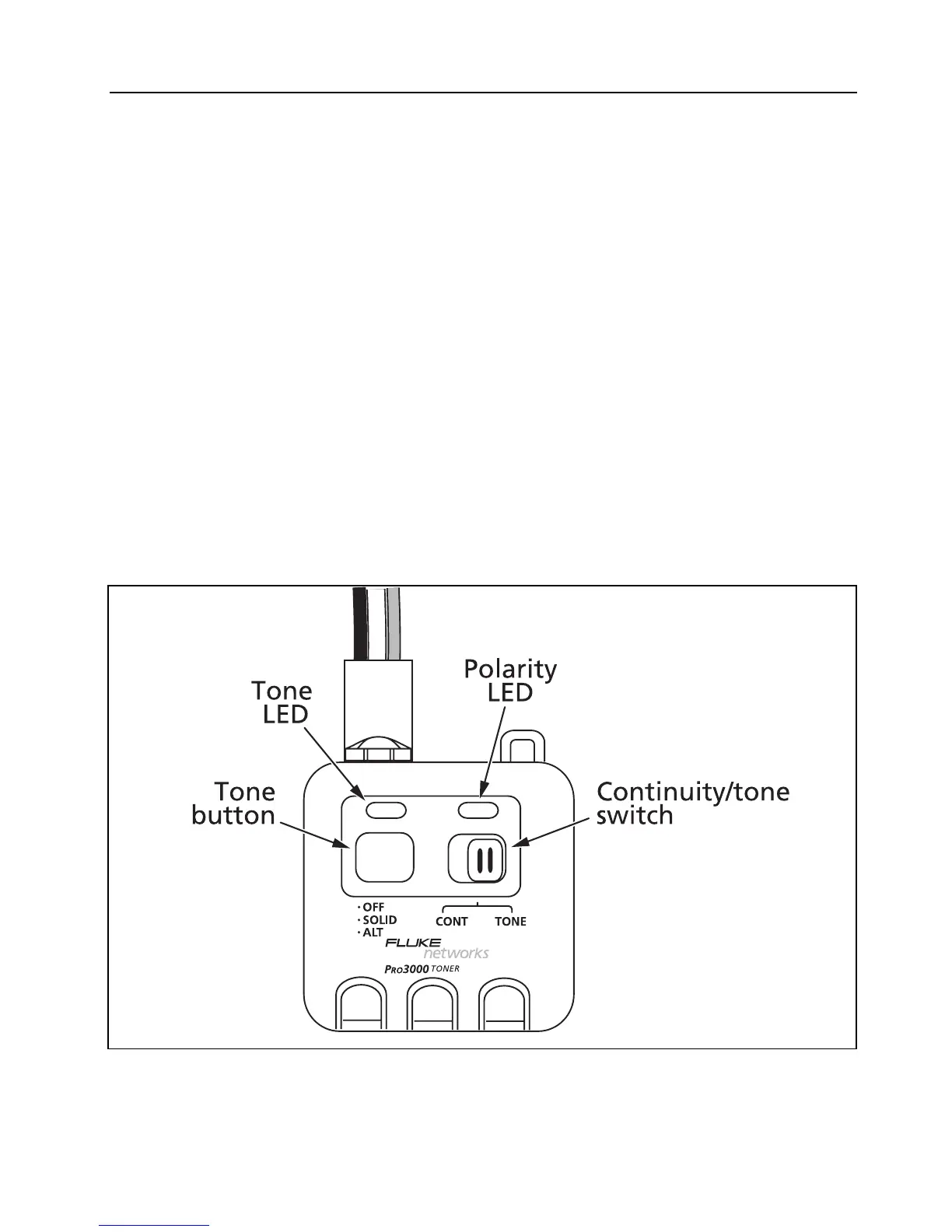 The polarity/continuity LED is just above the toner's slide switch. The