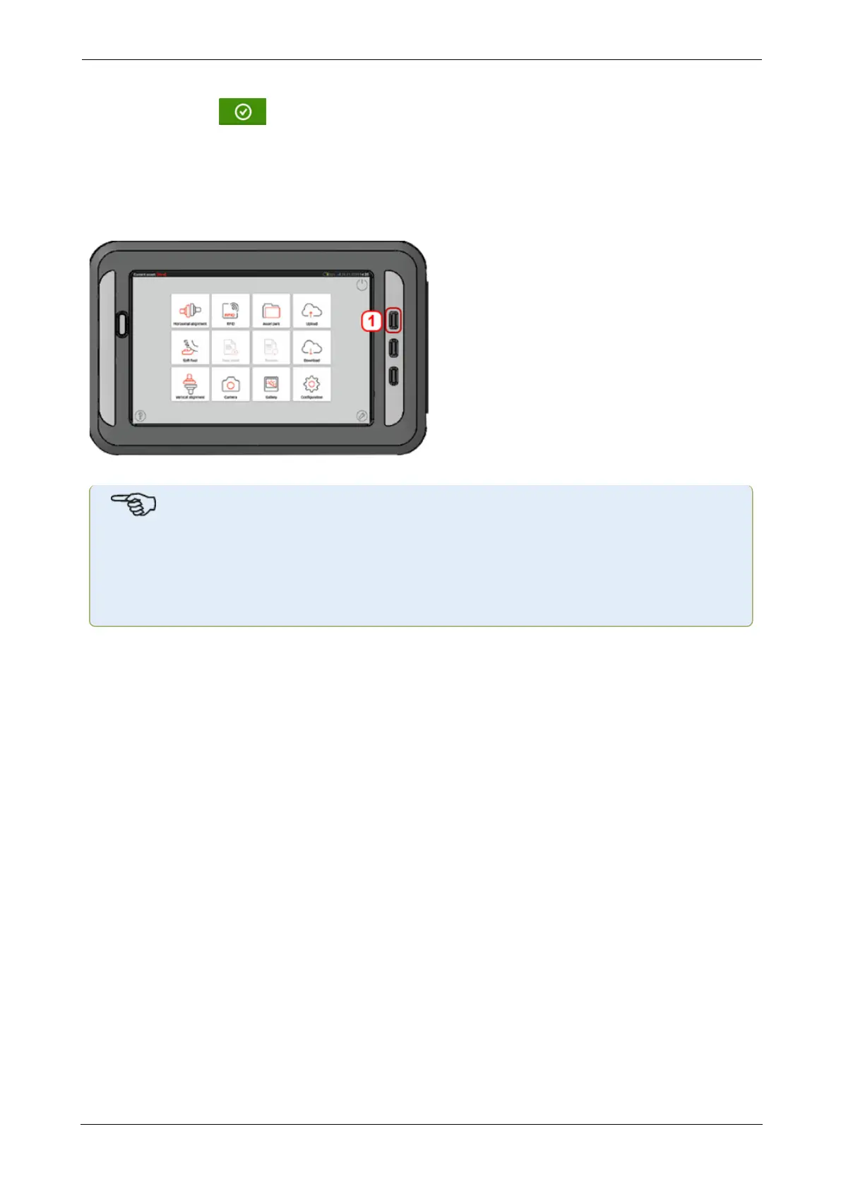 Select the desired screen then press the Back hard key (1) long enough. The message 'Screen-