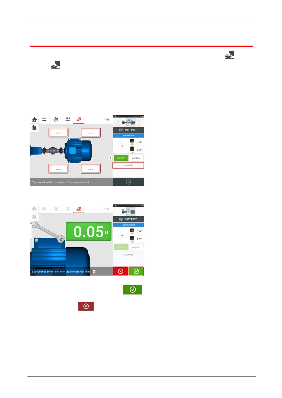 canceled by tapping the 'Cancel' icon. The above soft foot measurement procedure is