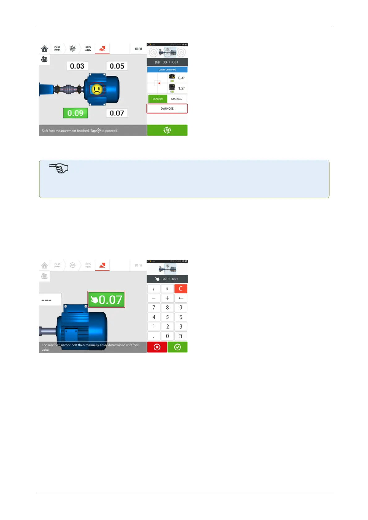 If however soft foot is detected, the item 'Diagnose' is active. Tap 'Diagnose' to start the soft