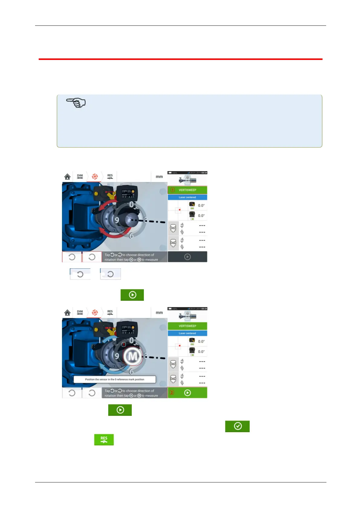 l Position the shafts such that sensor and laser are both at the '0' reference mark pos-
