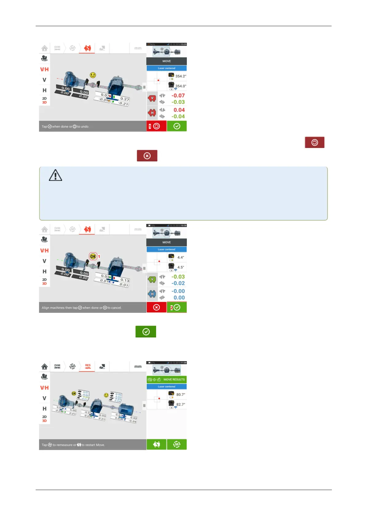Move the machines until the alignment condition is within the specified tolerance which is indic-