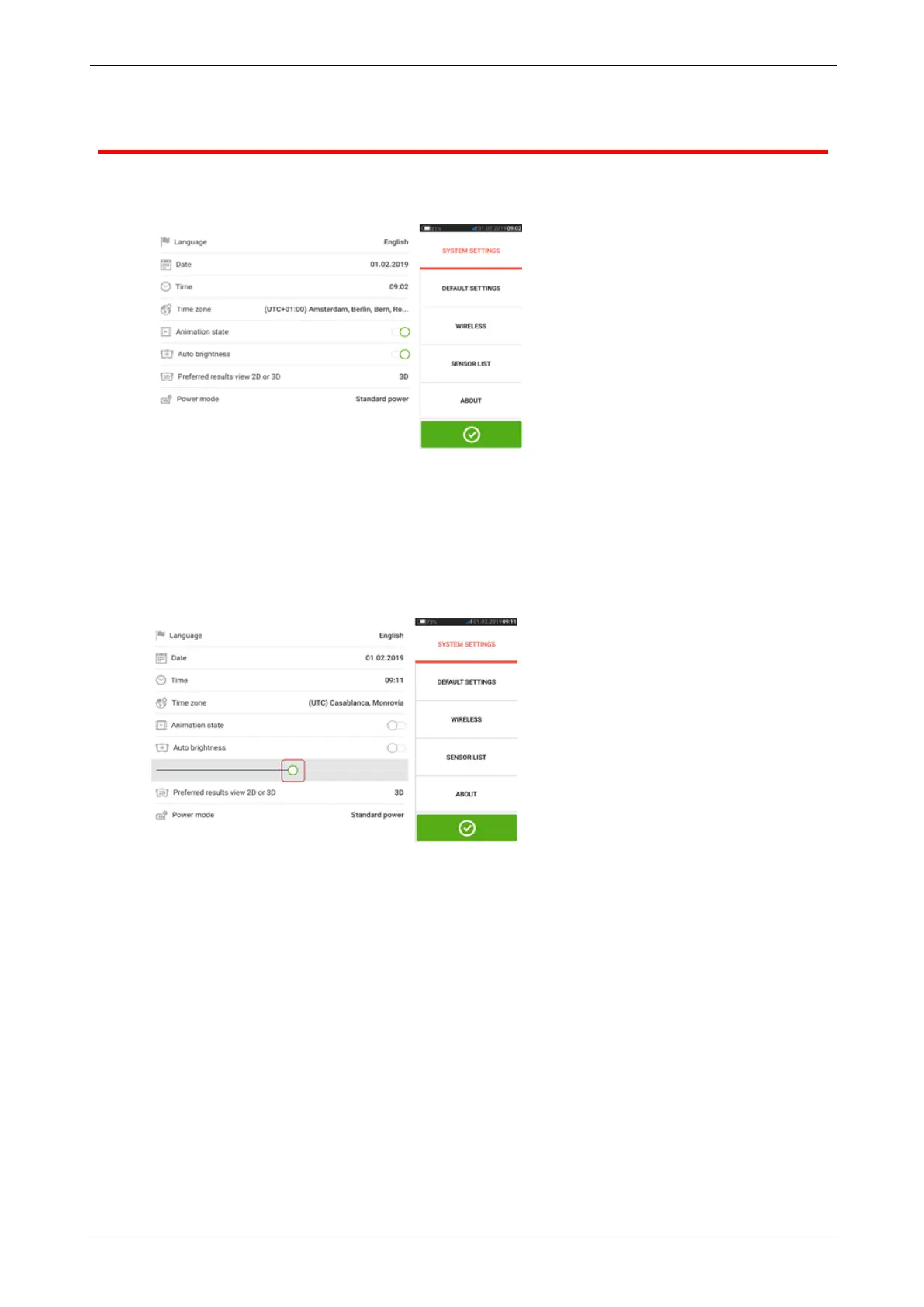 > Auto brightness – adjusts the display brightness of the touch device. If "Auto bright-