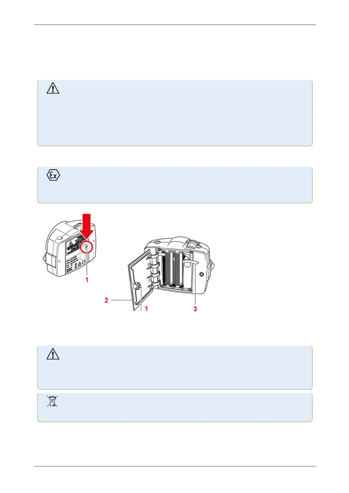 Batteries must be changed only outside the explosive area! Note that only alkali-man-