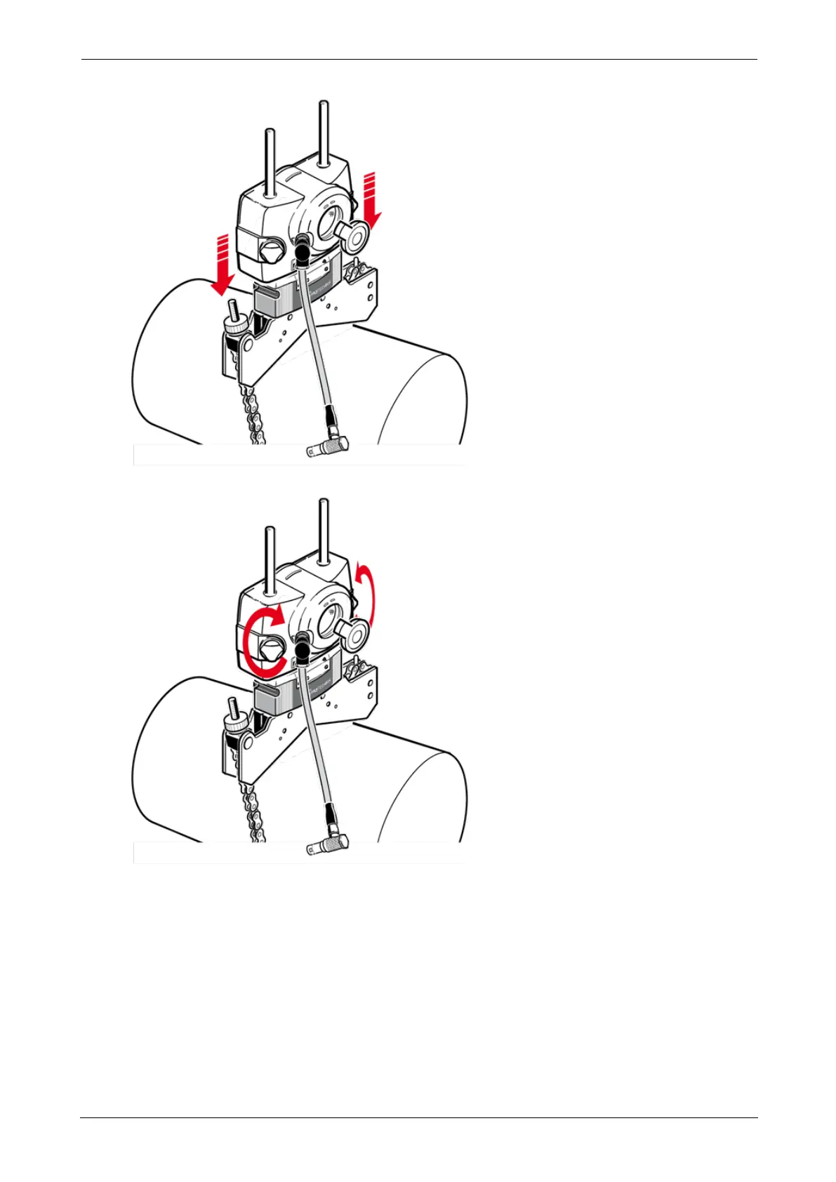 l Clamp the sensor onto the support posts by tightening the yellow knobs.