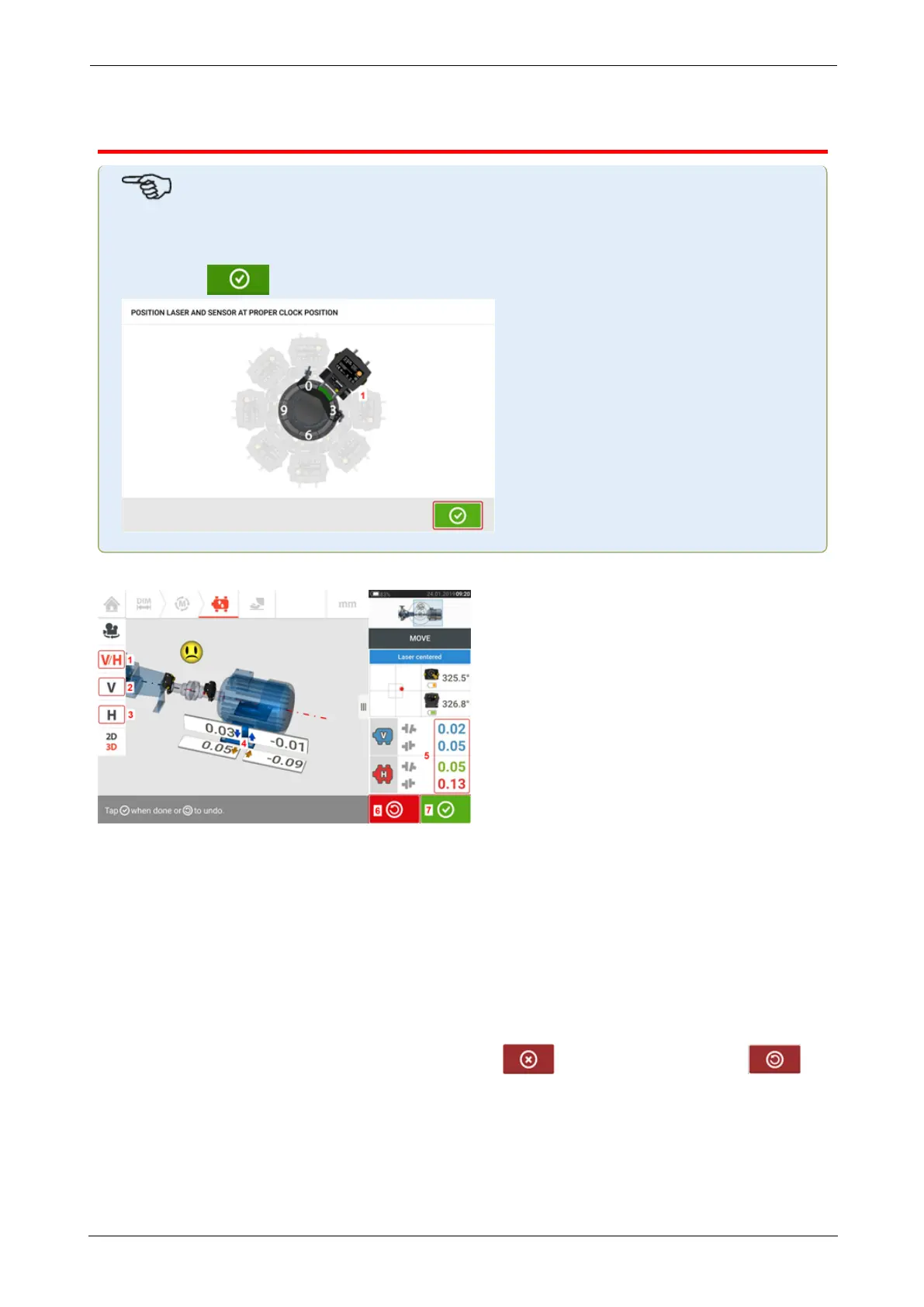 desired 45° clock position (1) of the sensor and laser has been selected and confirmed