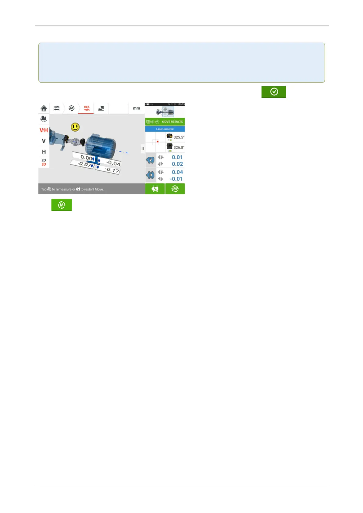 Tap to remeasure and verify the Live Move results, and confirm new alignment con-