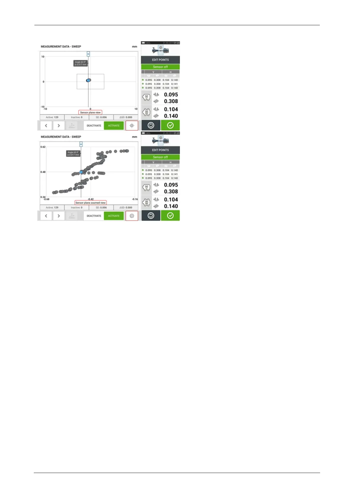 Individual points are deactivated in order to lower the standard deviation value. Change in