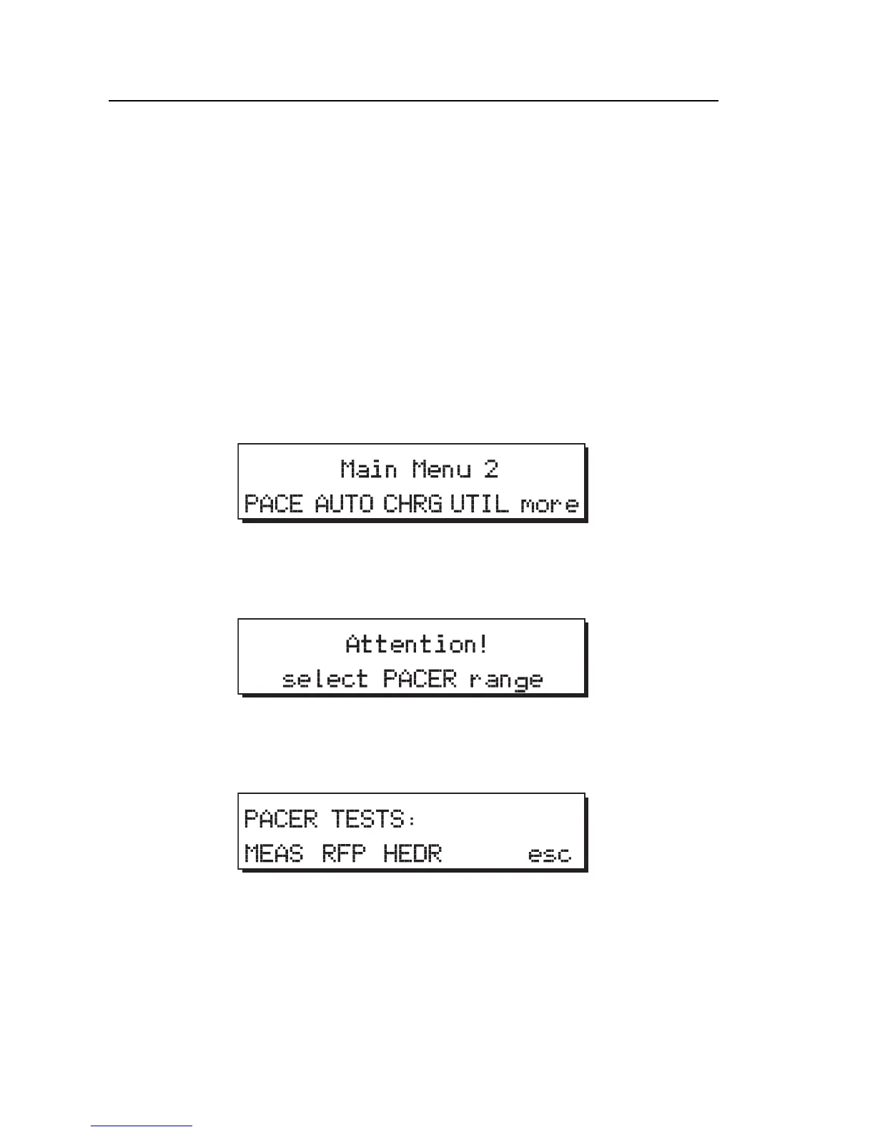 3. From Main Menu 2, press the PACE softkey to display the Pacer