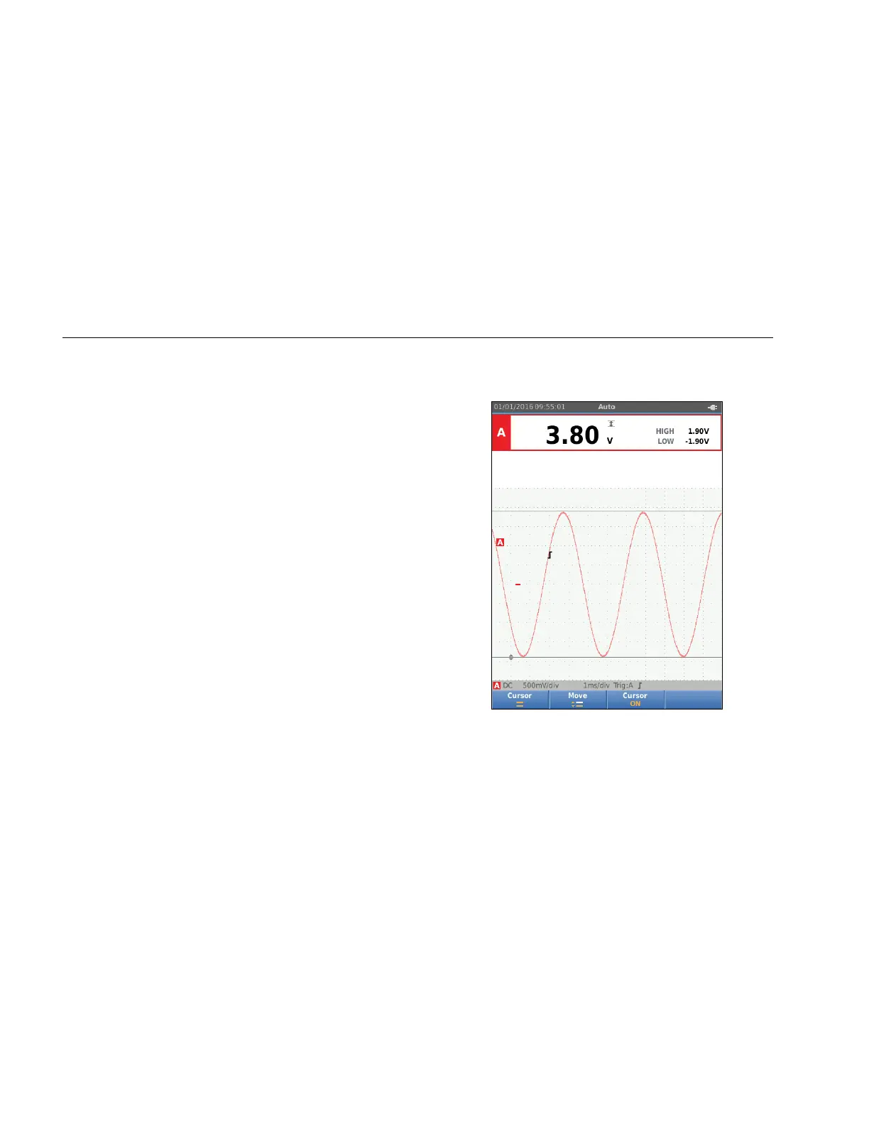 To use the cursors for a voltage measurement: