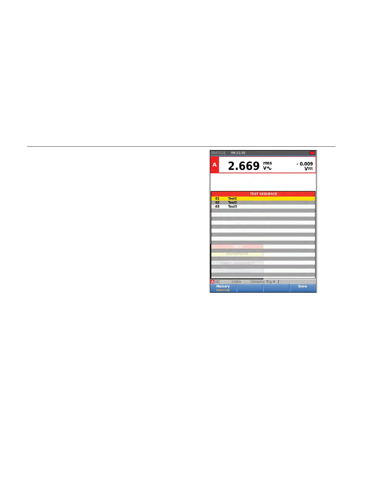 2. Push 1 to open the TEST SEQUENCE menu.
