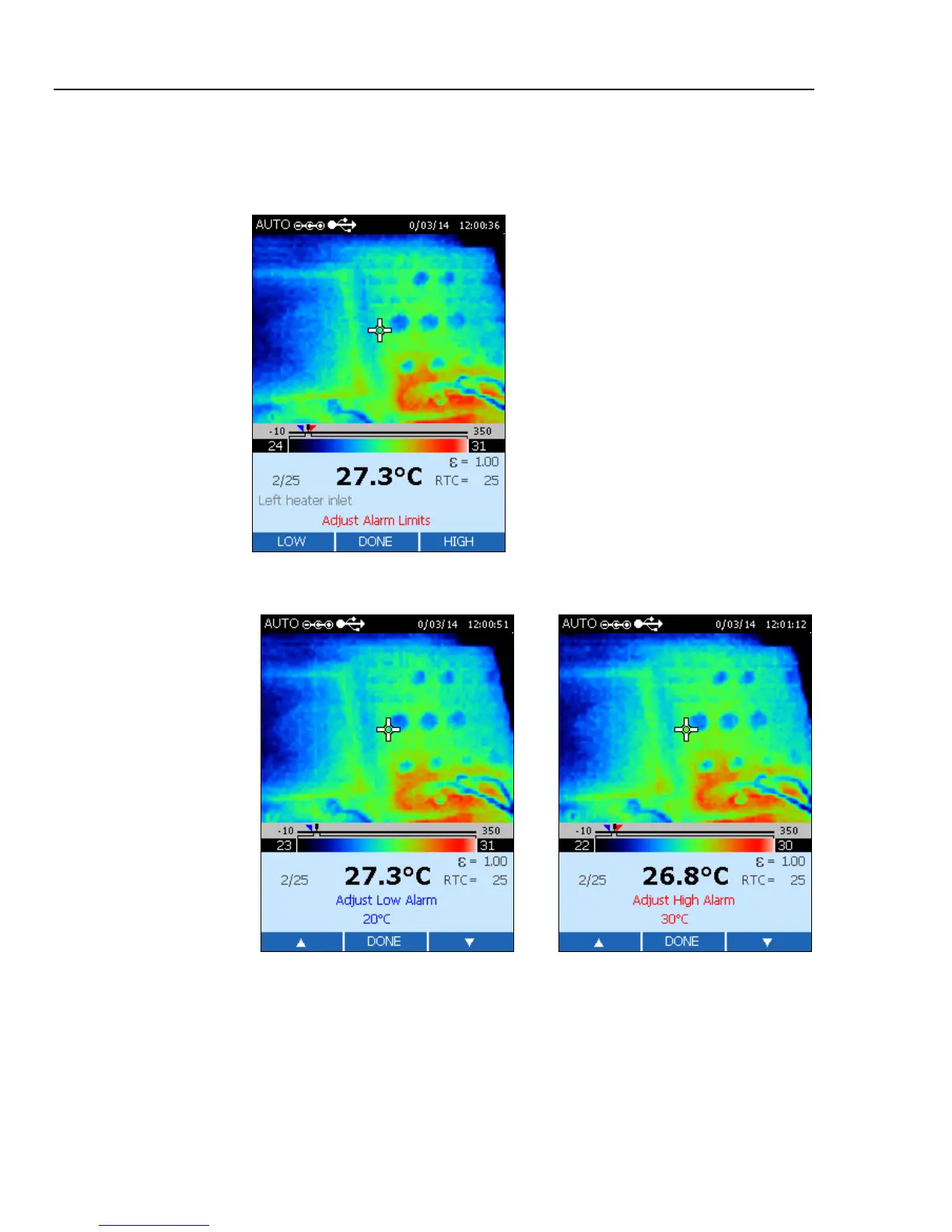 2. Press F (ALARM) to access the Adjust Alarms display.