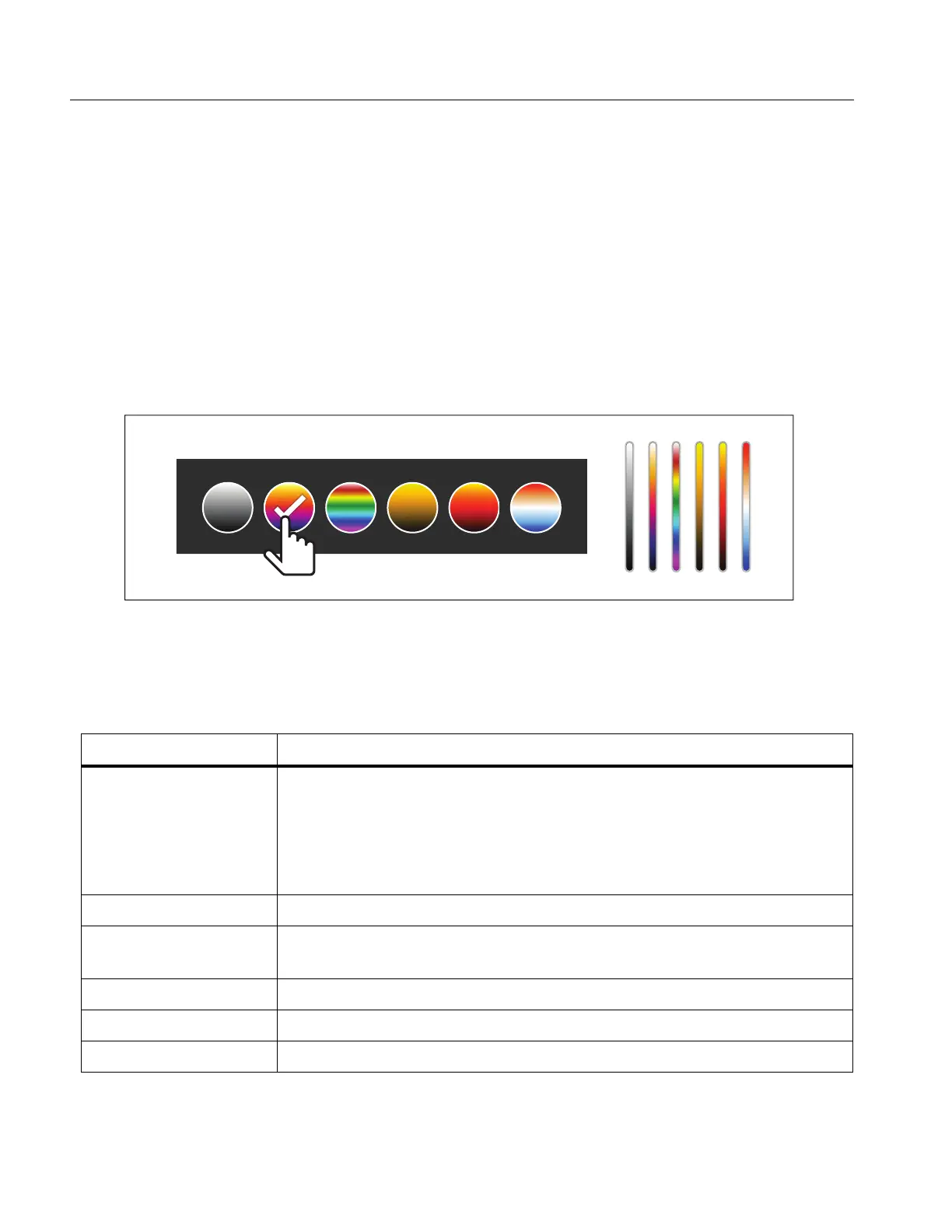 A check mark shows on the selected palette. The color and temperature range bar on the