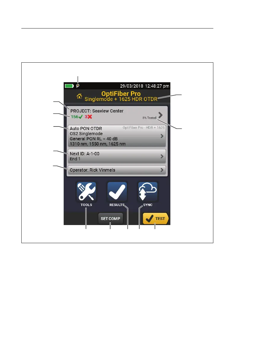 The Home Screen for OptiFiber Pro HDR OTDR