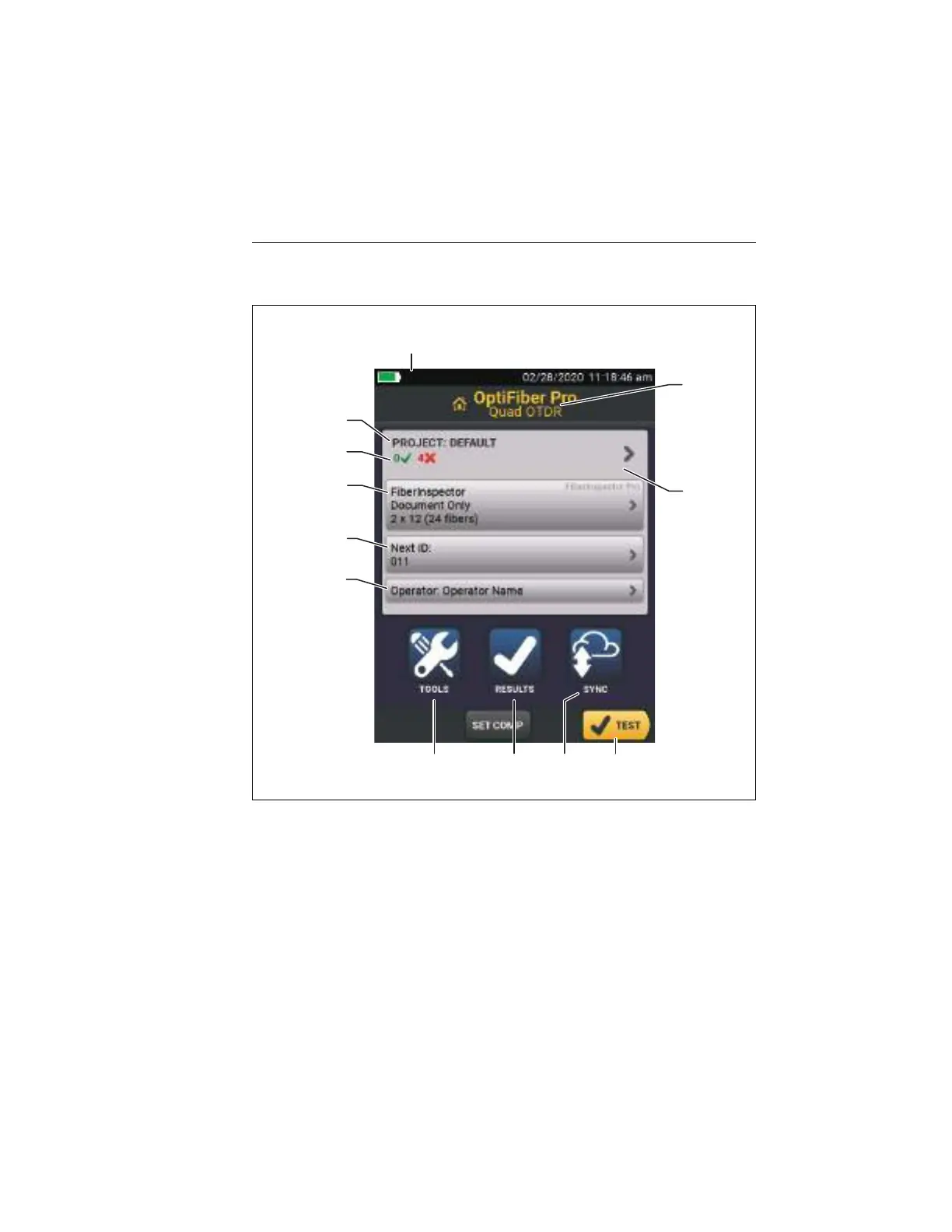 Figure 47. Home Screen for FiberInspector Pro Tests