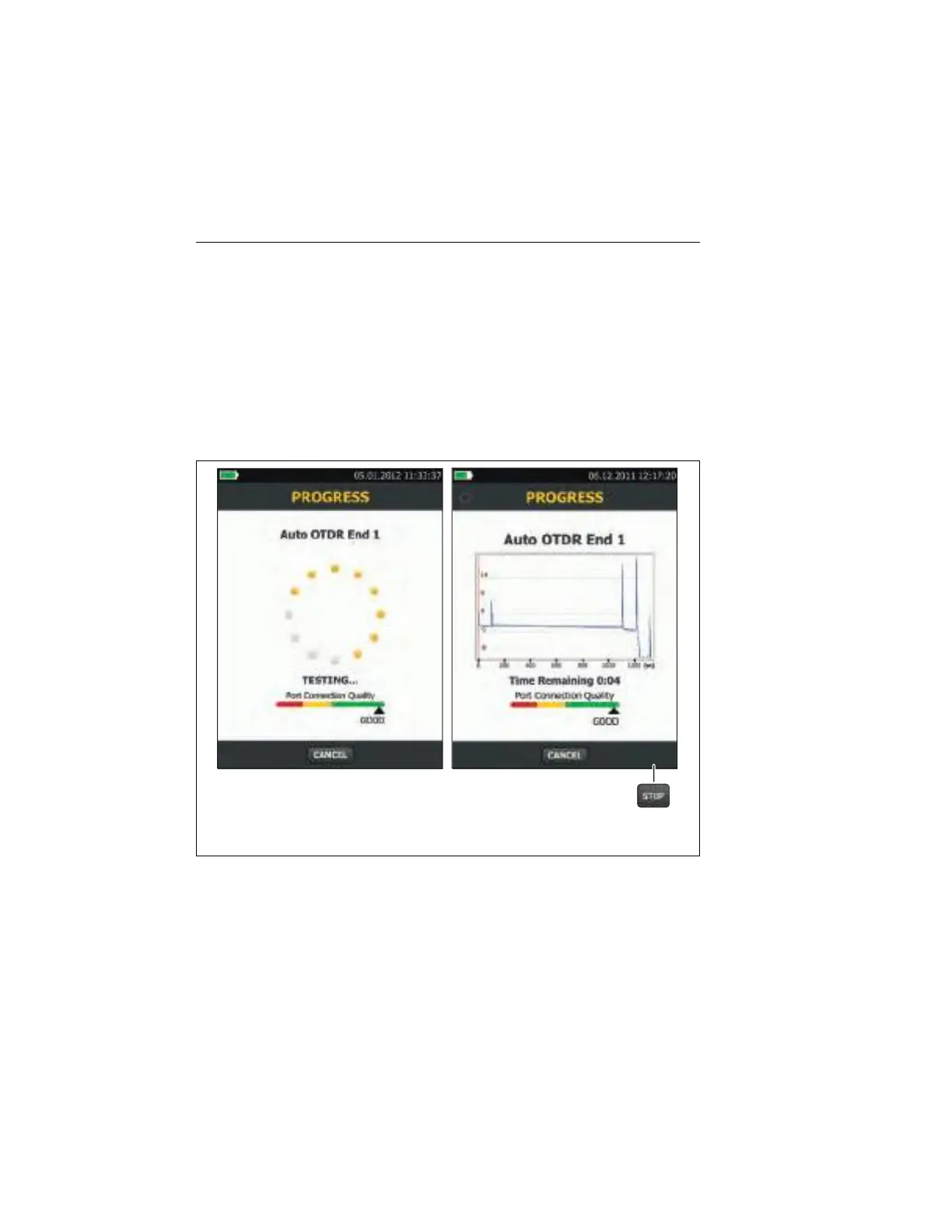 When a trace shows on the PROGRESS screen for a manual OTDR