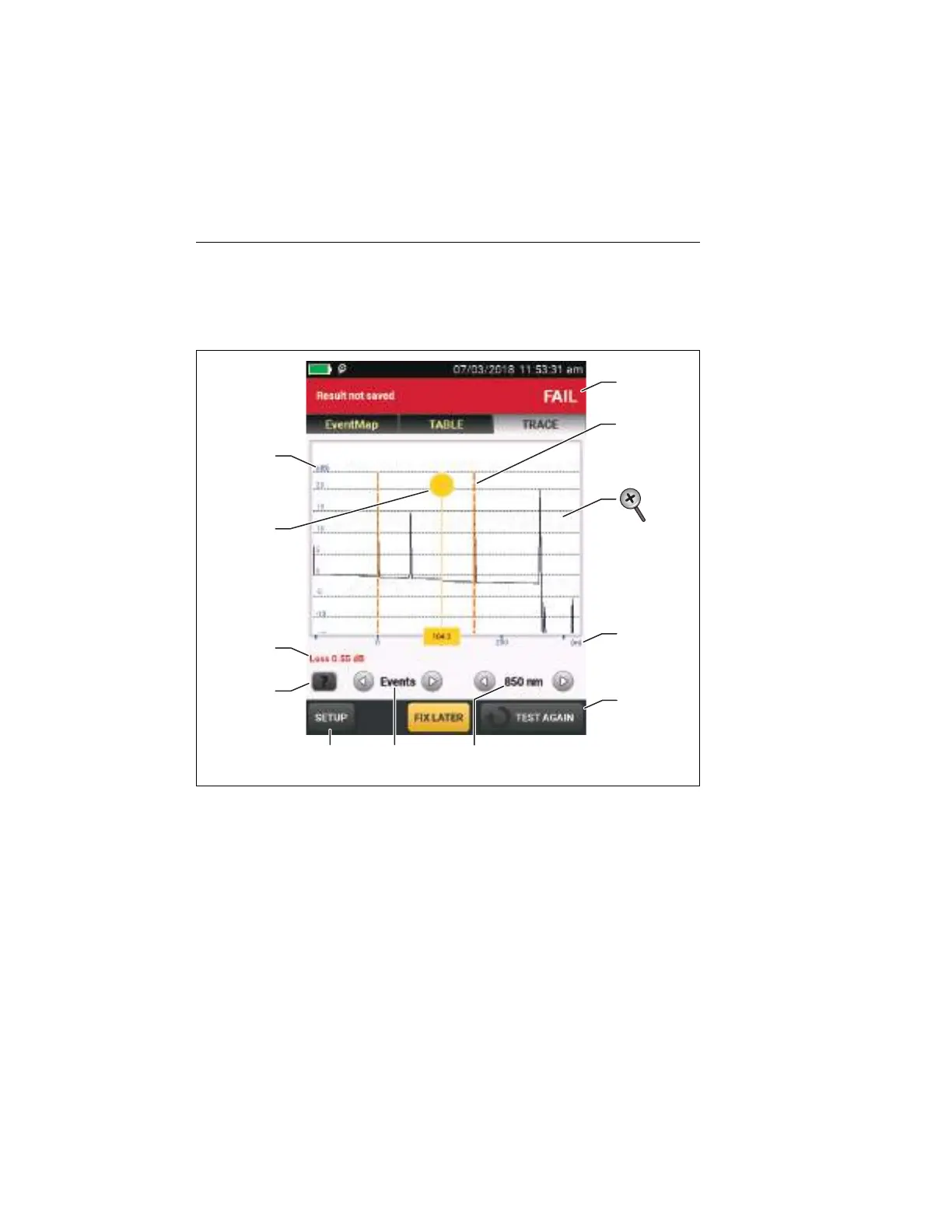 To see the OTDR trace, tap TRACE on the OTDR results screen.