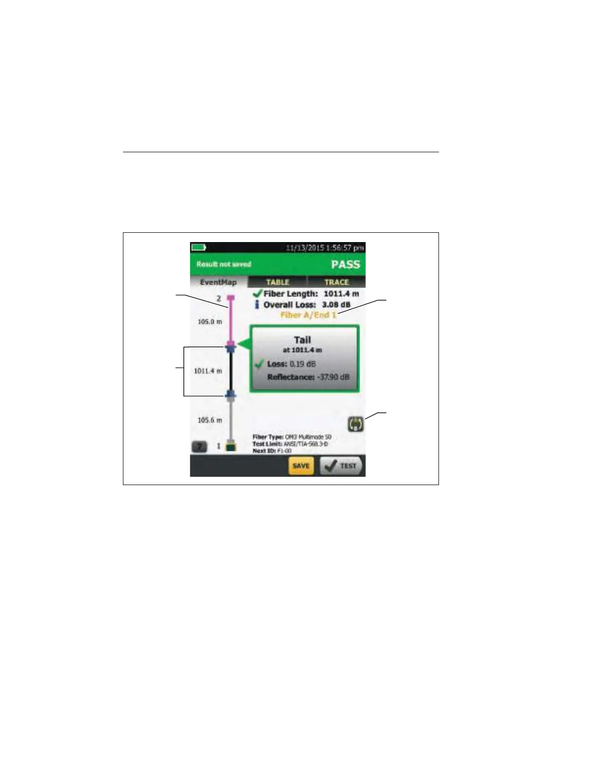 TABLE, and TRACE screens, one for each fiber in the link. See