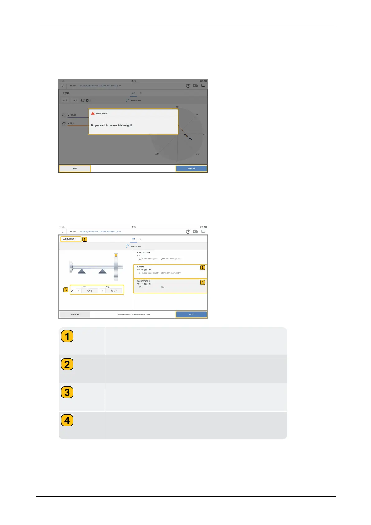 arrow direction shows the path of the balancing run. In the trial run the imbalance