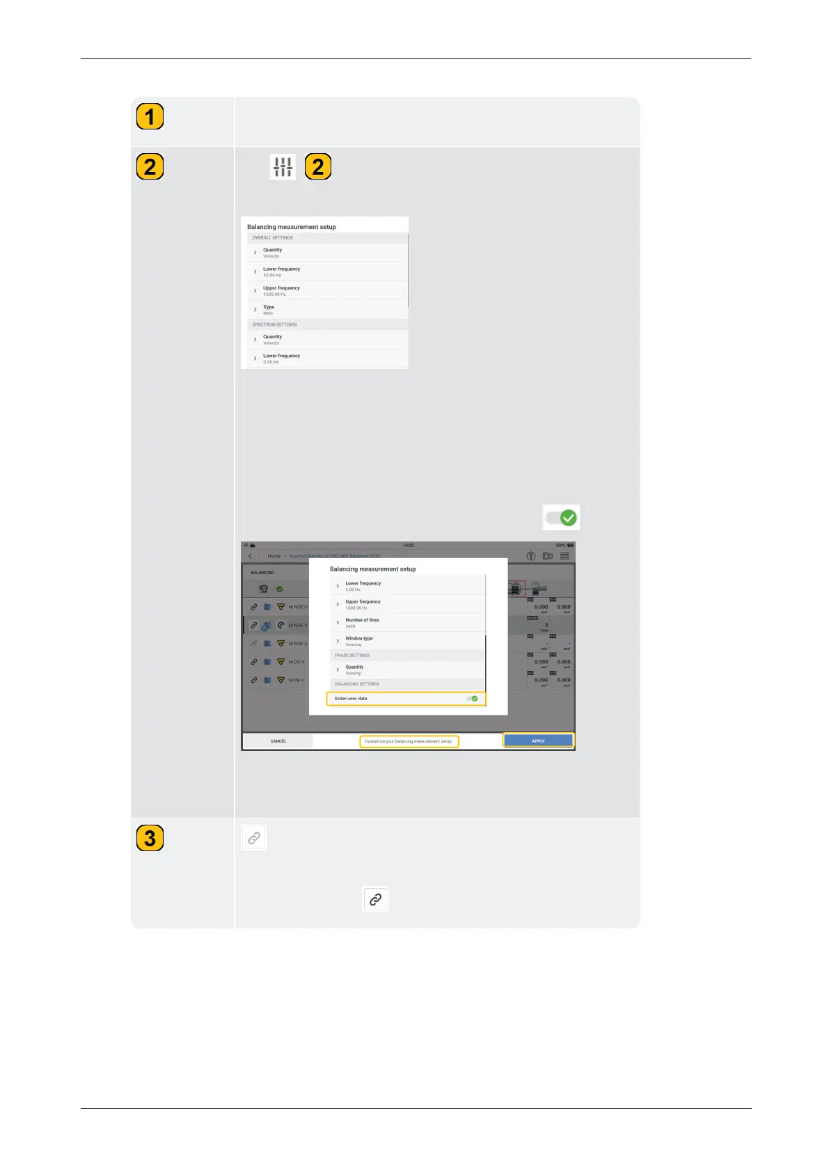 Tap ( ) to set necessary parameters for balancing