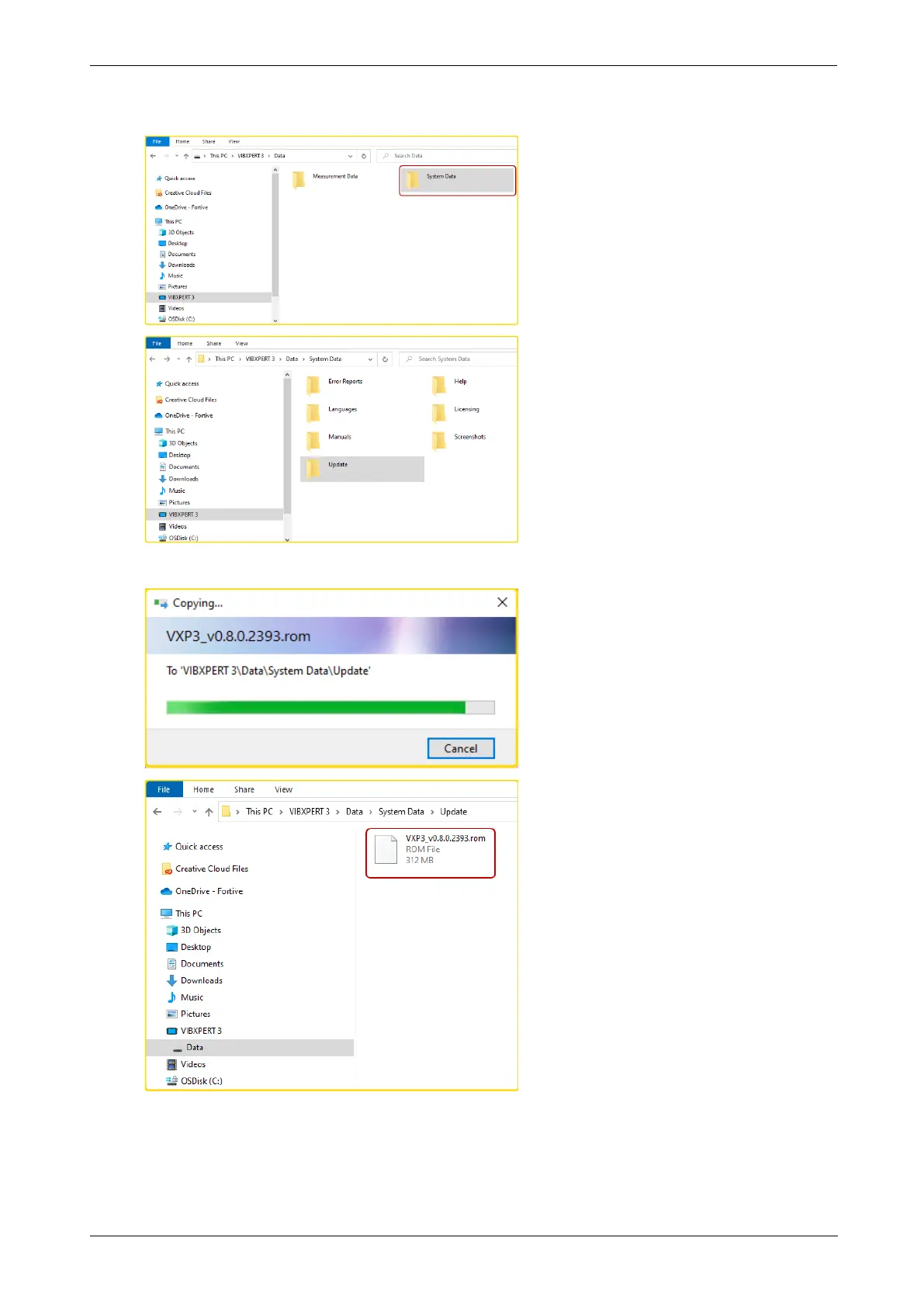 Transfer the update file [VXP3_vx.x.x.xxxx.rom] to the Update folder.