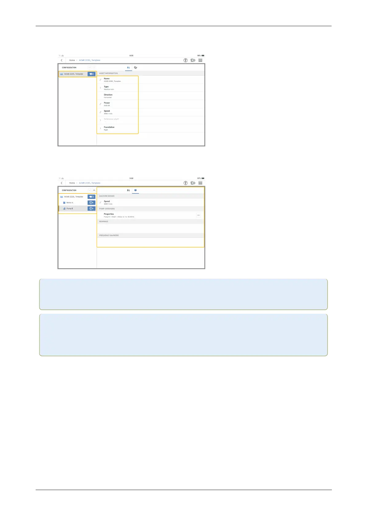 In the configuration screen, edit the asset as necessary. Start at the machine train level.