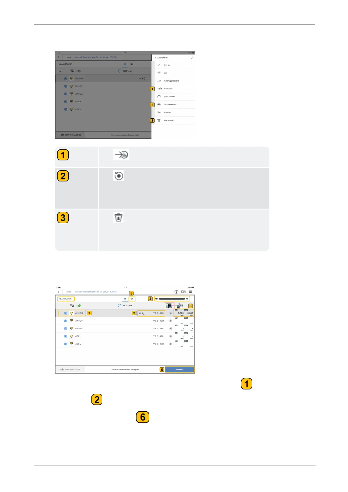 To measure, tap MEASURE ( ). Alternatively, press either of the two yellow device