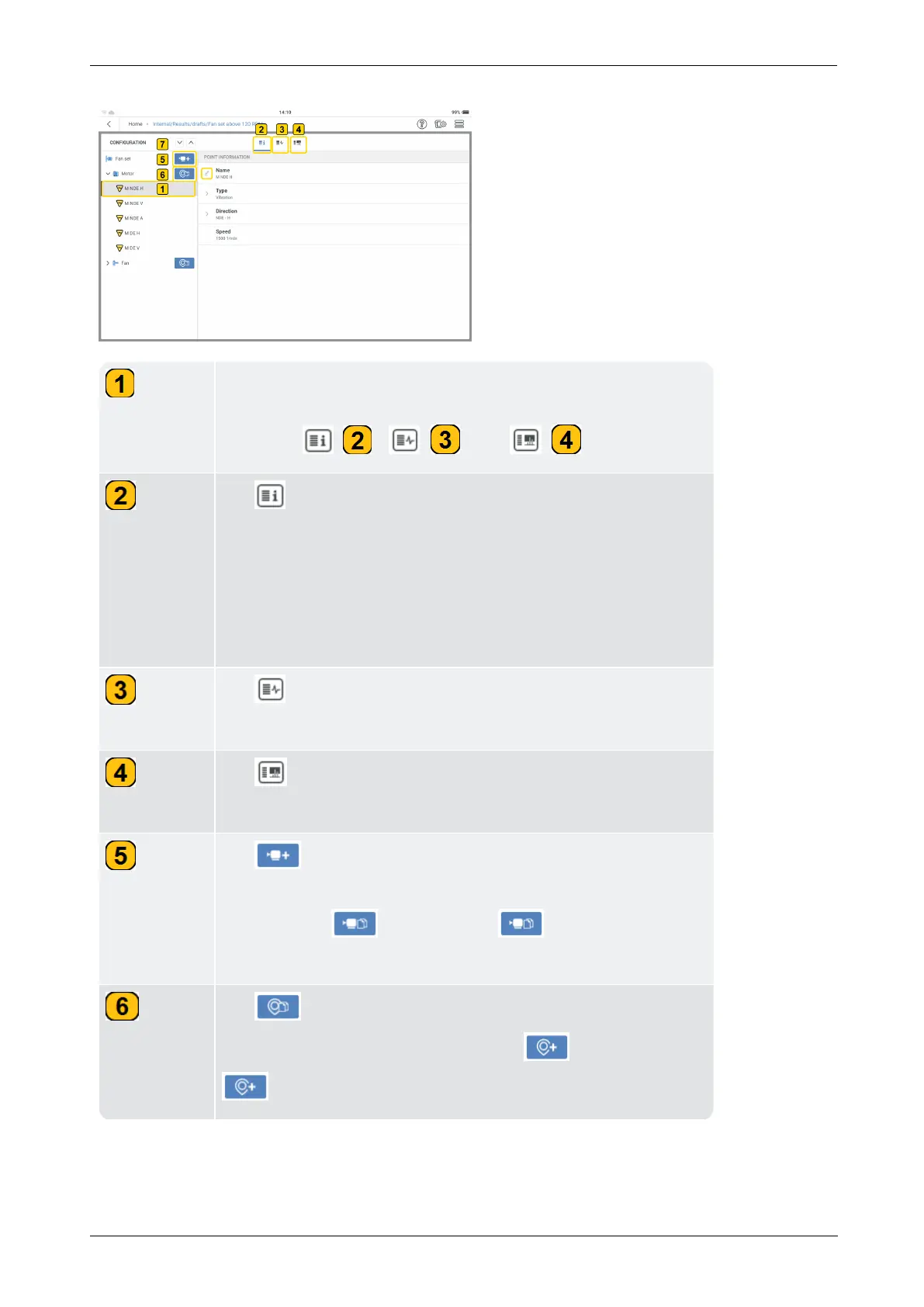 selected machine and the related measure locations.