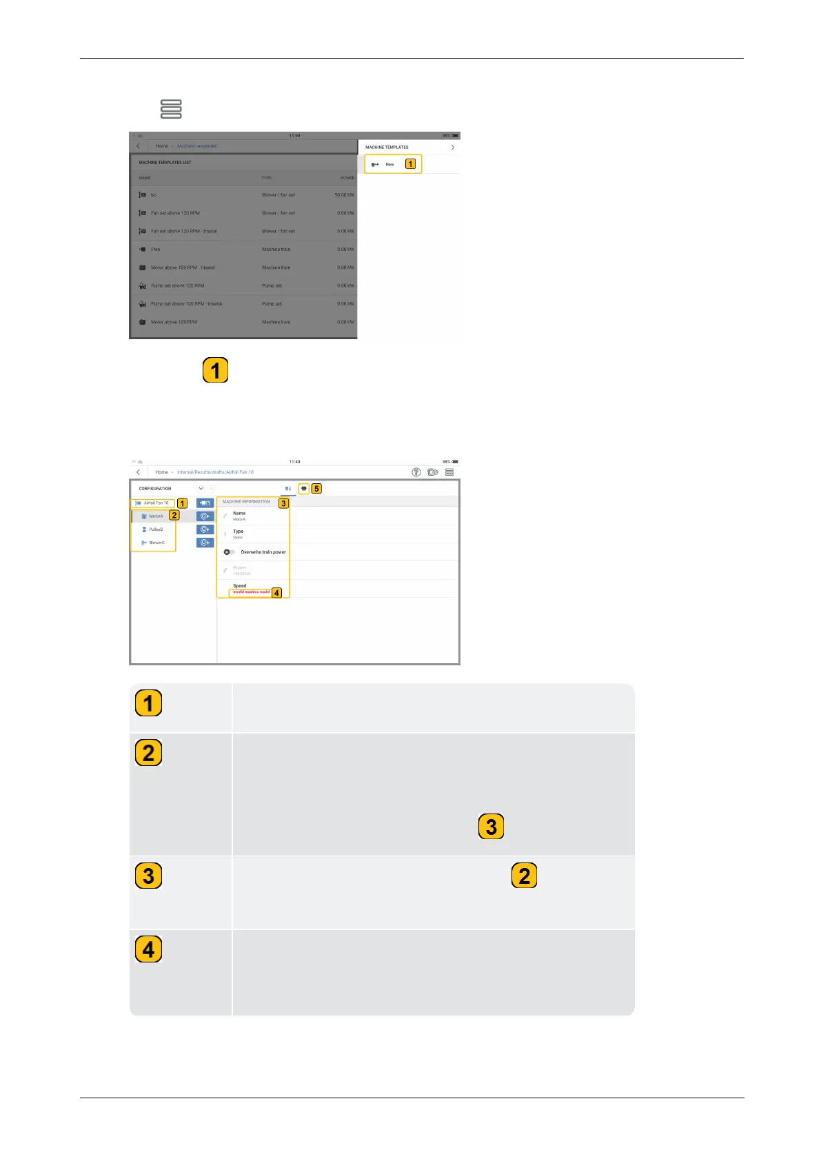 Shows the type of machines in the machine train. In this