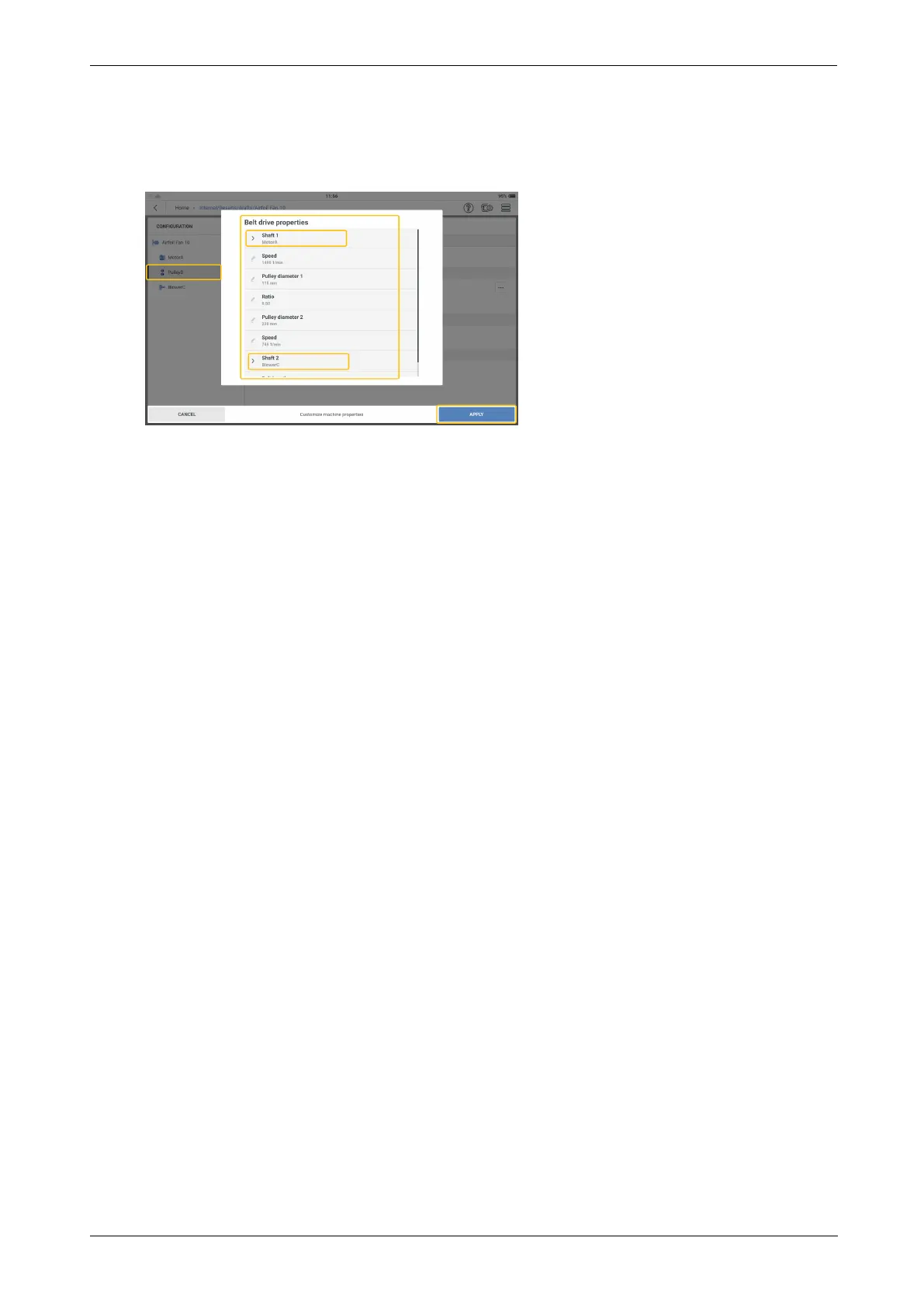 Other drive belt properties to be edited are: pulley diameters and speed ratio. Tap