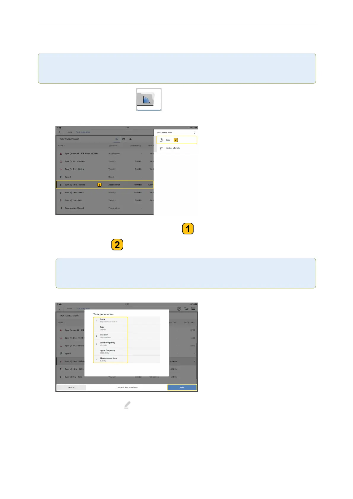 shown. Tap Copy ( ) to create a copy of the selected task template.